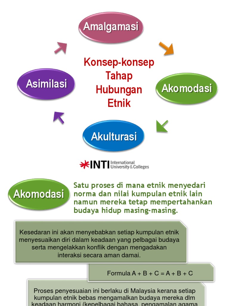 Pengertian Syarat Dan Faktor. 2 pengenalan seperti mana yang kita sedia maklum bahawa negara kita merupakan salah sebuah negara yang masyarakatnya terdiri daripada pelbagai keturunan. Hubungan etnik di Malaysia melalui proses tertentu yang mempunyai konsep tahap- tahap seperti Segregasi Akomodasi Akulturasi Asimilasi dan Amalgamasi.